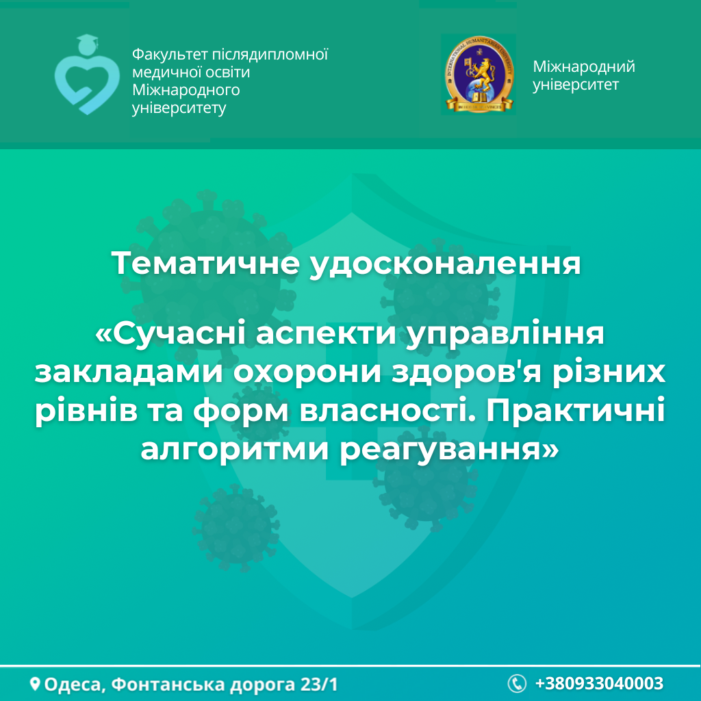 Цикл тематического усовершенствования для медицинских работников первого и второго уровней медицинской помощи. 📆 Длительность: 2 недели 📚 Количество баллов: 50 ☎️ Контактные телефоны: +38 (094) 922 28 03; +38 (048) 788 98 03 +38 (093) 88 999 16
